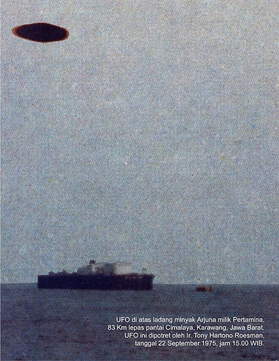 Cet objet volant non identifié a été photographié le 22 septembre 1975 par Tony Hartono près des côtes de Cilamaya, dans l’ouest de l’île de Java, en Indonésie.